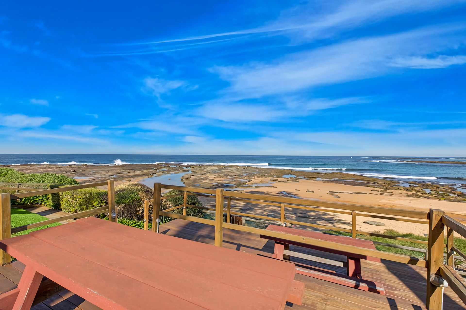 The beachfront directly in front of the unit is a popular spot for small children with natural pools sheltered by the rocks and a sheltered beach at the northern end. The many rock pools in a huge rock platform, visible in the pools from the balcony, offers endless amusement for small children.
