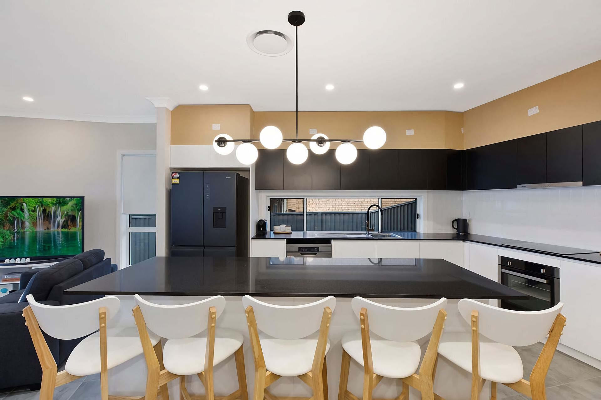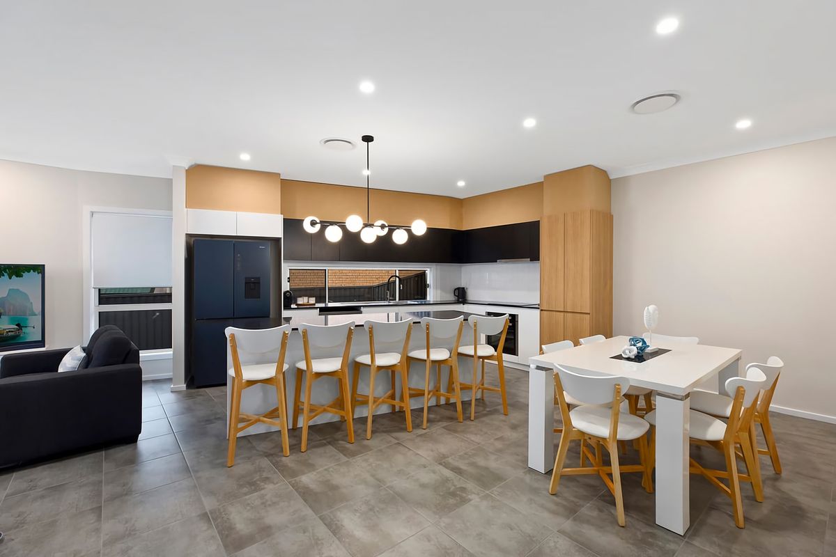 Culinary adventures are a breeze with the large family-sized fridge, dishwasher, and coffee machine at your disposal. Ample seating allows for memorable family meals, while downtime is enhanced by a large flat-screen TV, complemented by cosy lounges and ducted air conditioning for climate-controlled relaxation.