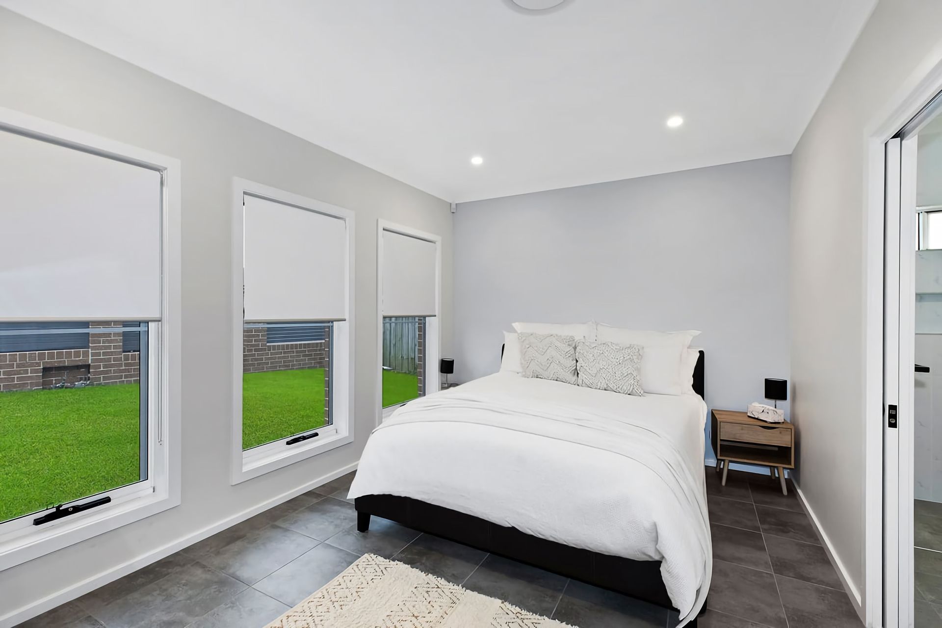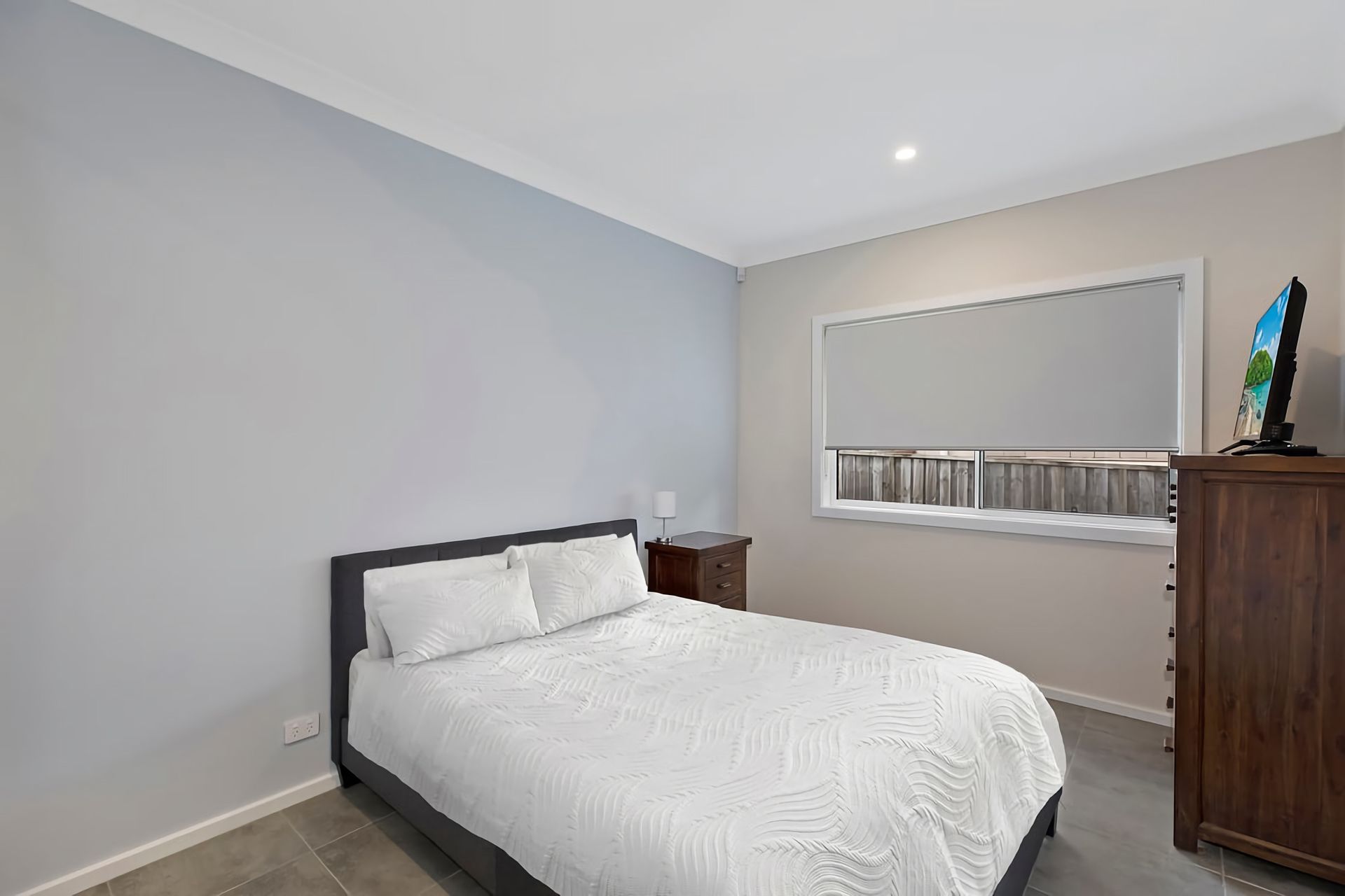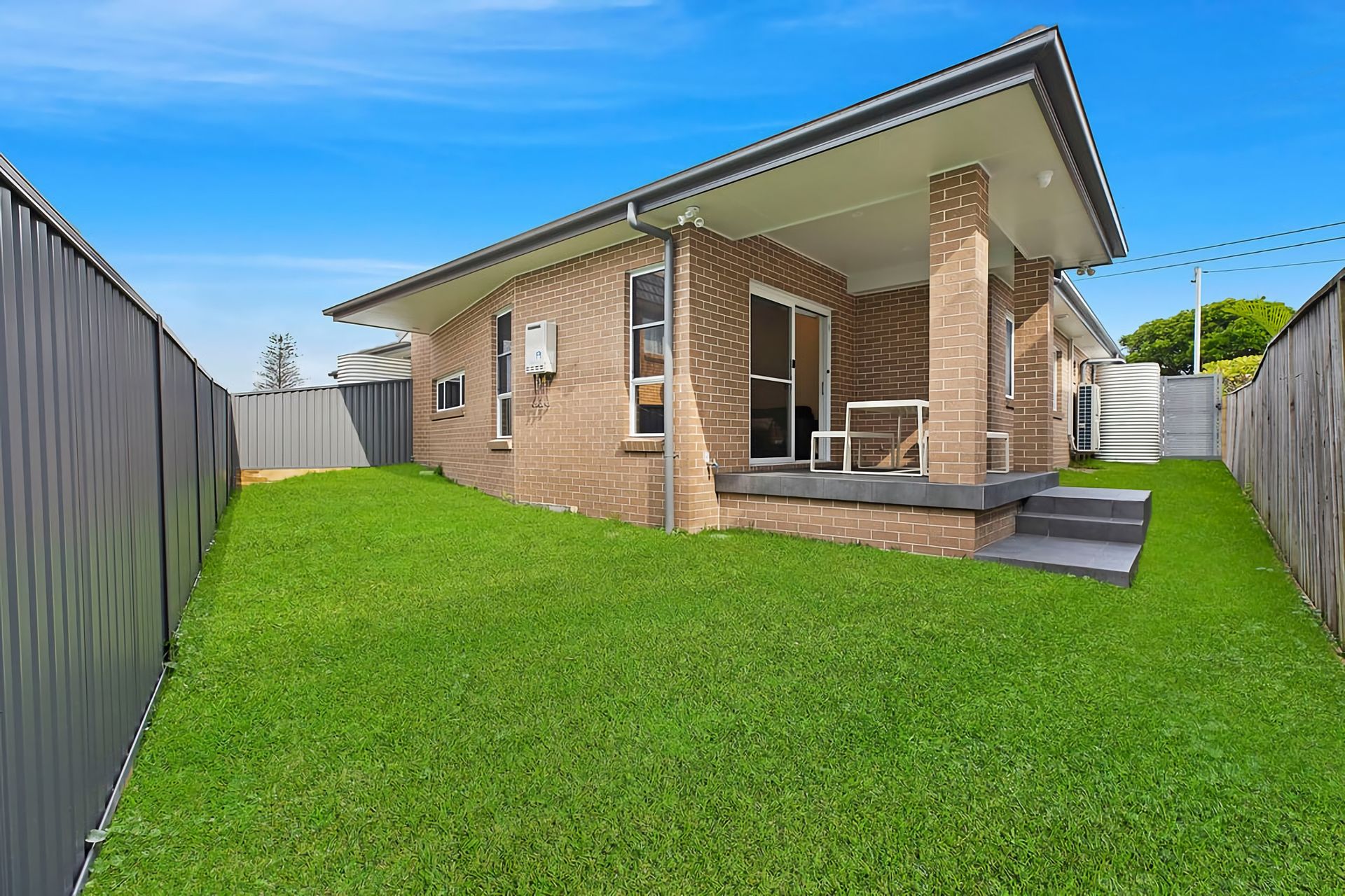 Each of the tastefully appointed bedrooms features a queen-size bed, with the main bedroom benefitting from a private ensuite. The villa boasts sleek tiled flooring throughout, ensuring cool comfort during the warm coastal summers. Families will delight in the tidy, grassed, and fully enclosed yard.