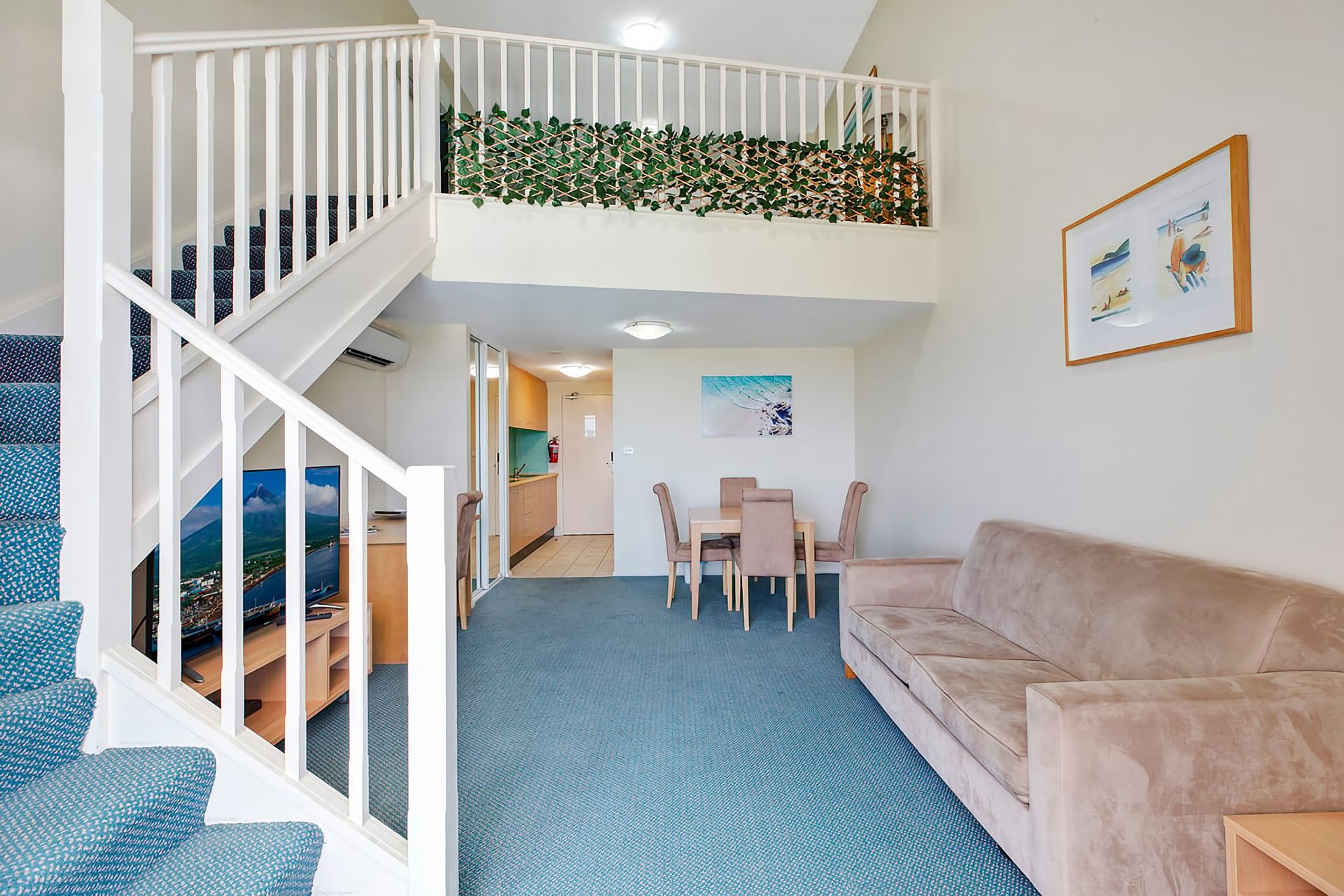The one-bedroom loft apartment offers air conditioning on both levels. Free Wi-Fi Fast internet, Two TVs one in the lounge room and One in the upstairs loft.