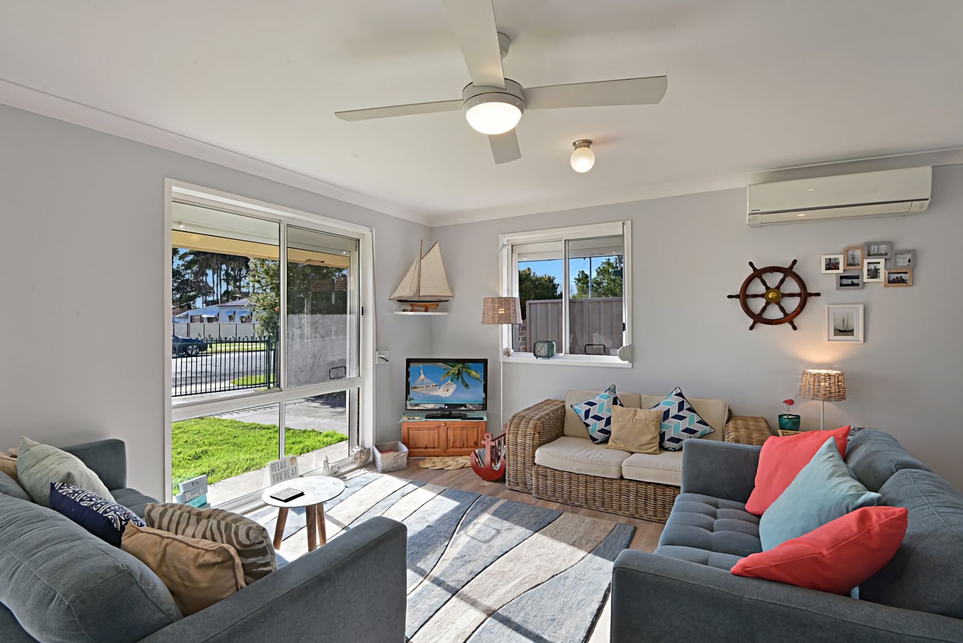 This Newly renovated 3-bedroom house has been tastefully decorated with a Nautical theme.