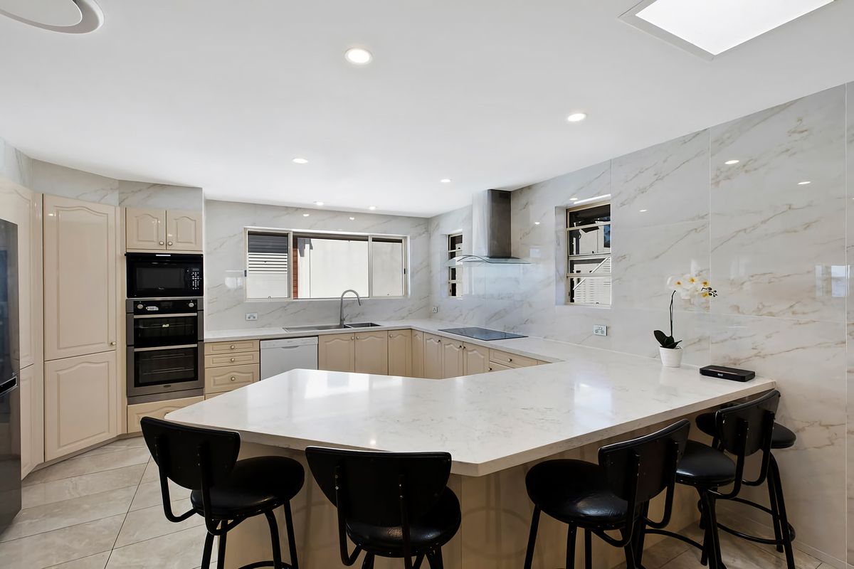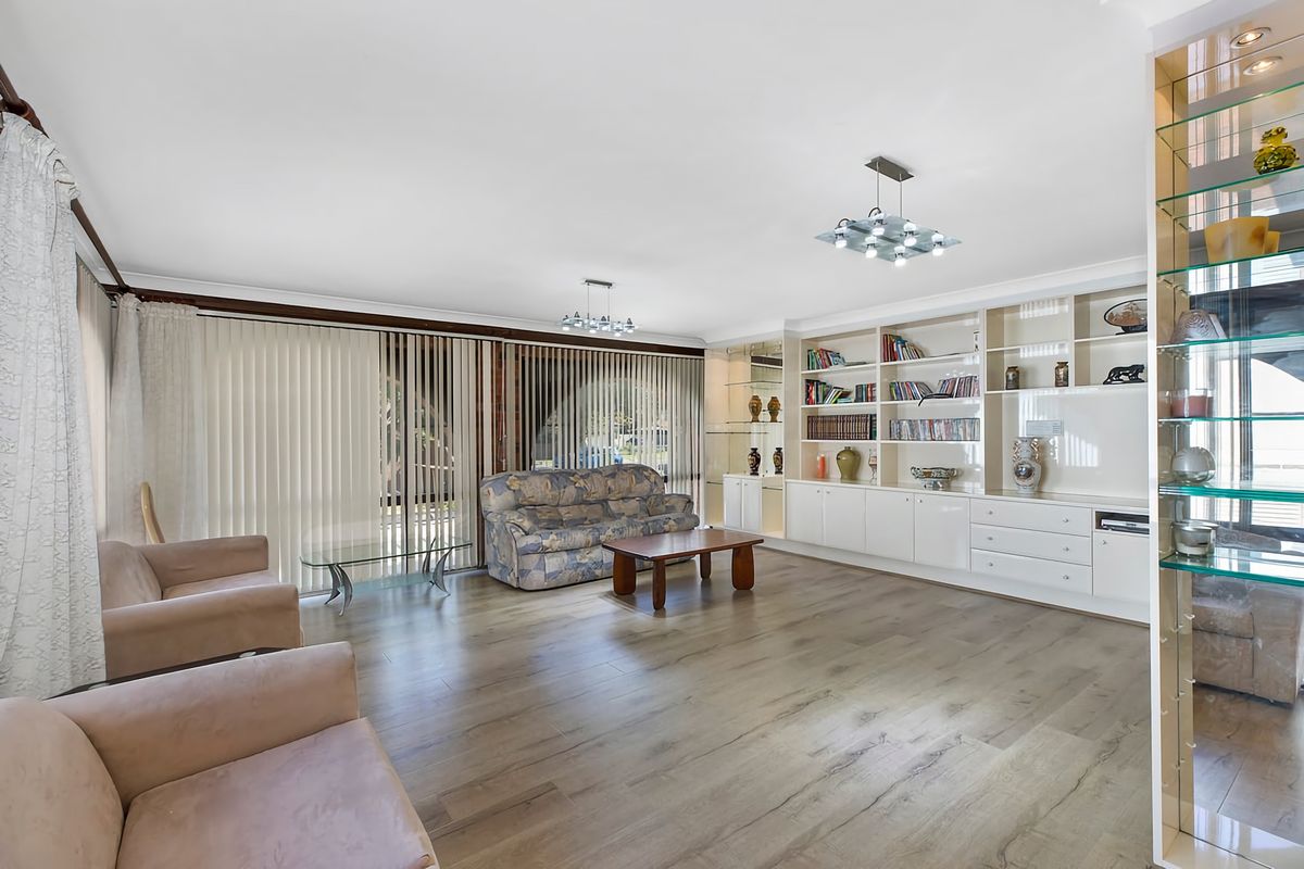 An executive style residence featuring 4 large bedrooms plus 5th bedroom/study, multiple living zones, a large master suite with ensuite including spa and remote double garage.
