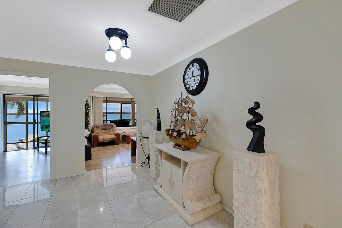 This master-built residence is an absolute waterfront home in Toukley, this beautiful home has recently been upgraded to include new luxury bathrooms. The home has been built and designed to take full advantage of the waterfront location. You will enjoy 180-degree north-facing water views across the tranquil Budgewoi Lake which boasts a private concrete jetty and boat ramp.